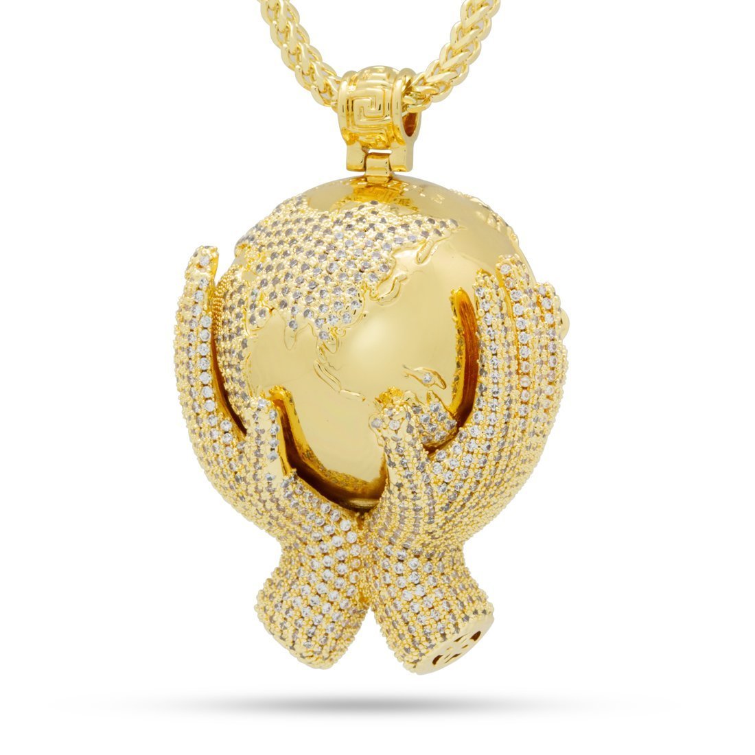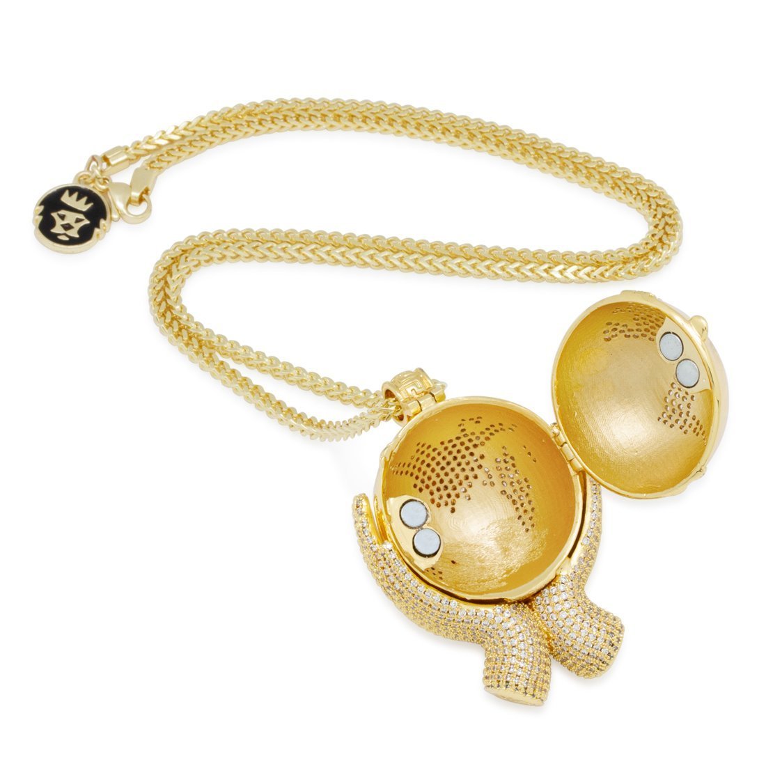 You've got the world in your hands with this 14K Gold Jungl Julz edition. Plated in 14K gold, each pendant features a hidden compartment to store your valuables, while the front-facing continents display clear, round-cut CZ stones, and with a matching 24", 2.5mm franco chain included, you get a one-of-kind pendant from Snoop Dogg's official jewelry line.